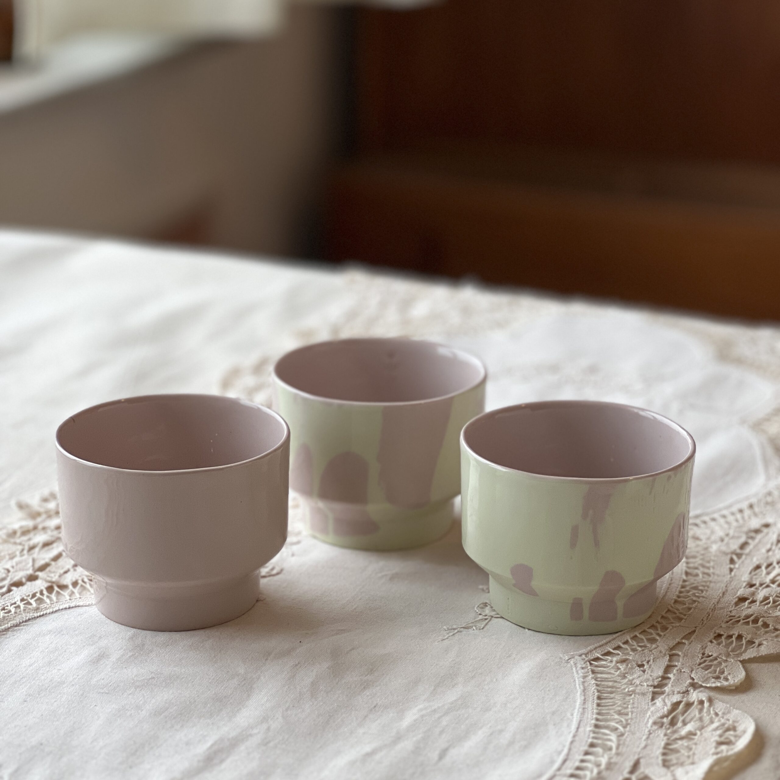 Kopjes in oude kleuren, met kleine schoonheidsfoutjes
