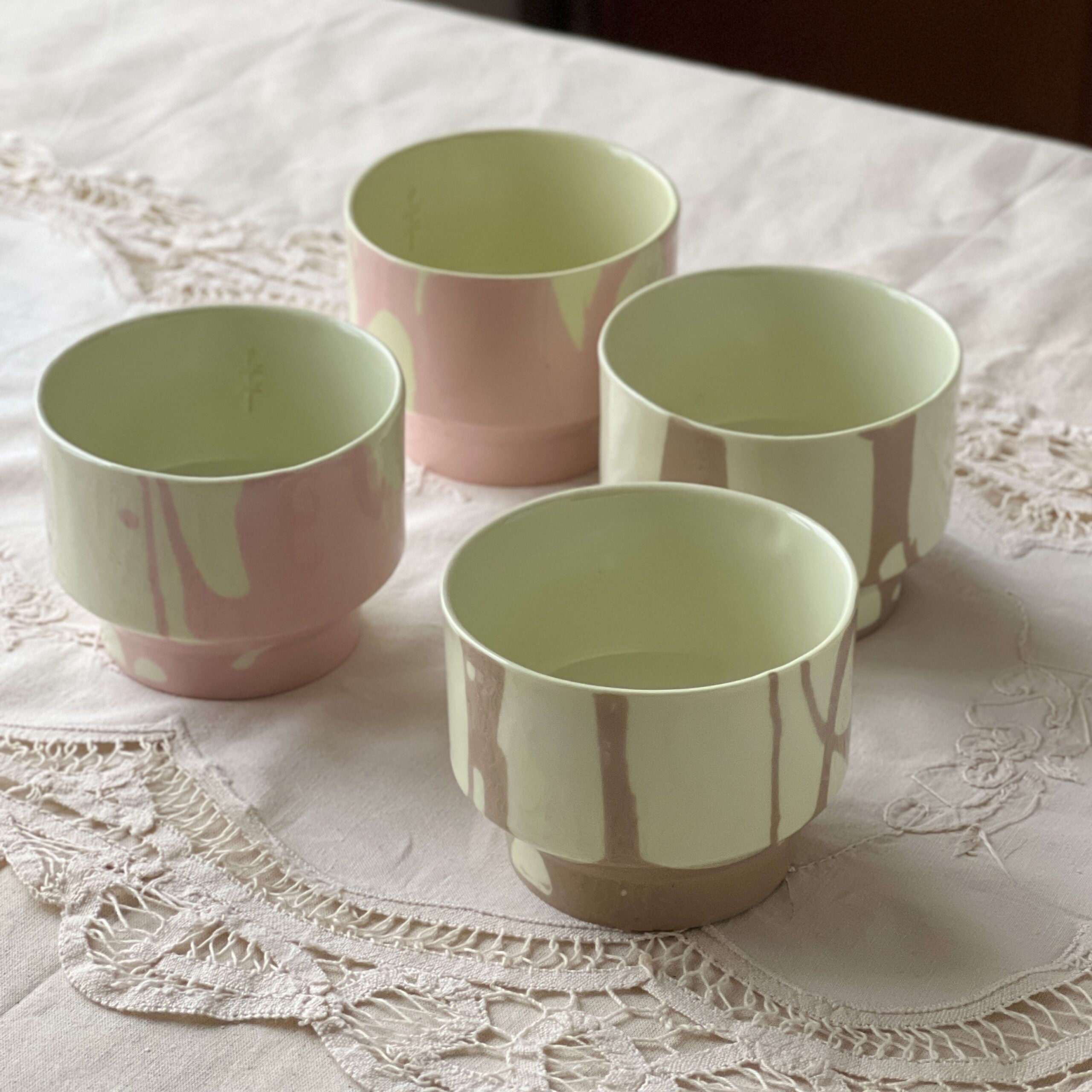 Kopjes in oude kleuren, met kleine schoonheidsfoutjes